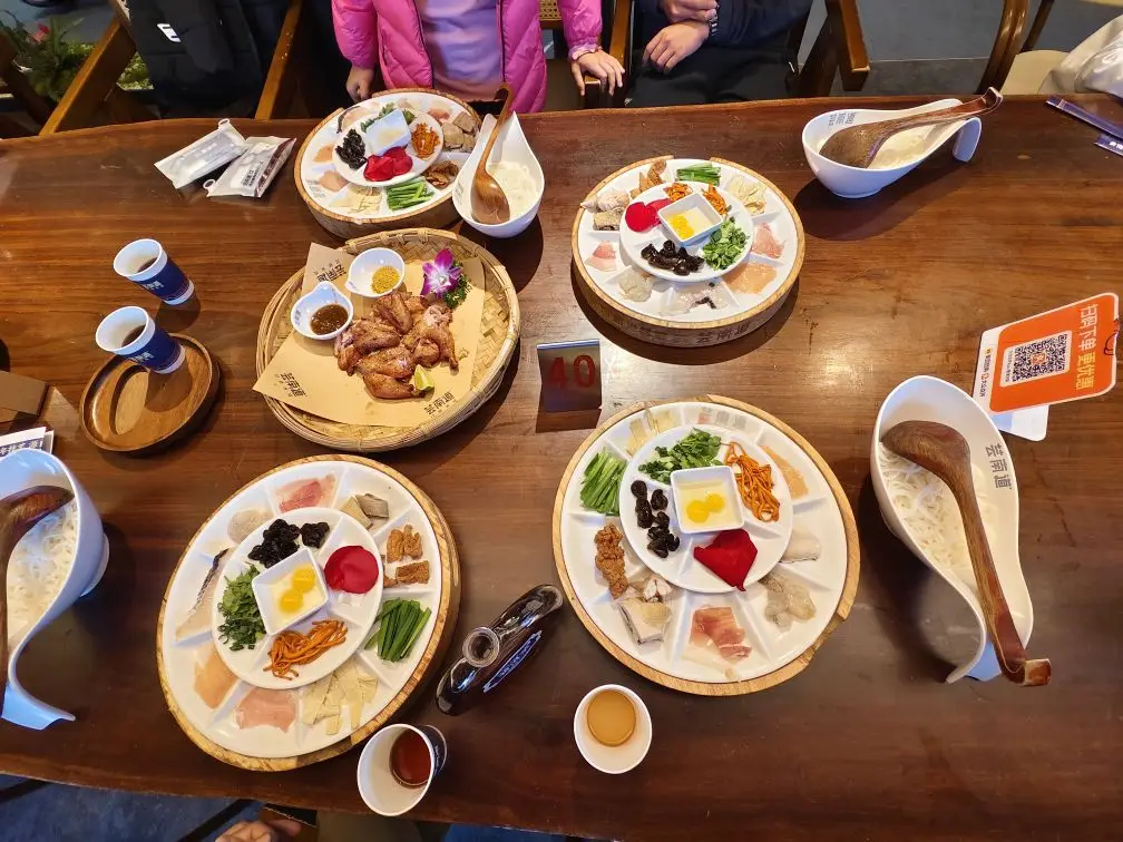 晨光叫醒我们的,是寻找一碗地道桂林米粉的渴望。不起眼的小店里,卤水醇厚,锅烧香脆,嗦一口,整个桂林的清晨便滑进了胃里。随后,我们追着二十元人民币上的风景,来到了兴坪。当那座熟悉的山峰真真切切立在眼前,与江中渔翁、竹筏共绘一景时,才懂得“甲天下”不只是传说。下午的象鼻山憨态可掬,像是这座城的守护神。我们没有停留太久,因为更远的彩云之南在召唤。当夜色笼罩,我们一头扎进通往昆明的茫茫黑夜。这是一种奇妙的感受,车轮在黑暗中前行,心却向着明早的春城之光。
