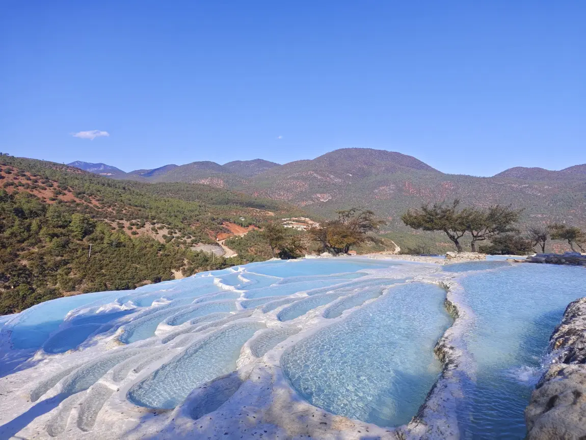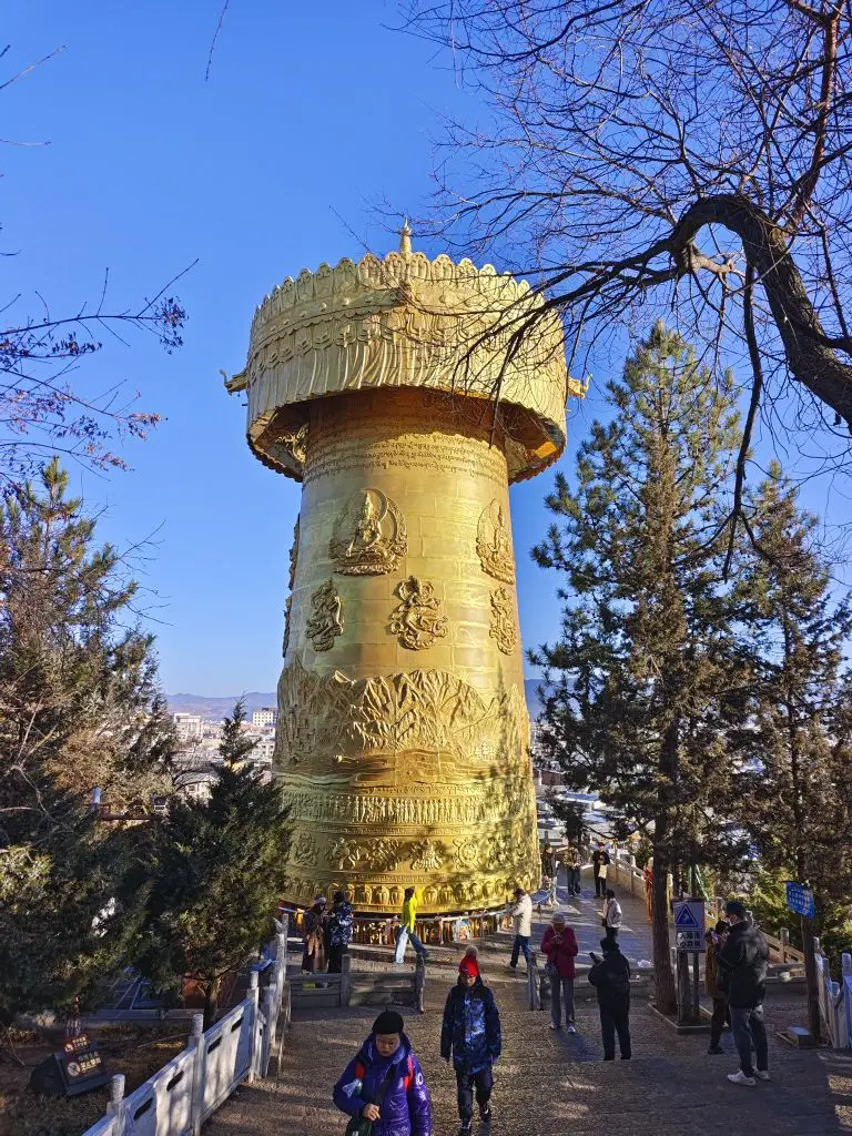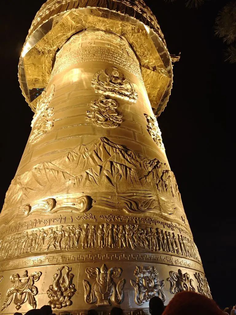 为了那一抹金色,我们在黎明前的黑暗中起床。当第一缕阳光越过山头,照亮玉龙雪山的顶峰,那纯粹的白瞬间被点燃成璀璨的金色,时间仿佛静止。日照金山,是雪山献给早起者最慷慨的馈赠。带着这份震撼,我们中午驶向香格里拉。214国道上,风景在窗外流动。我们特意绕道白水台,那层层叠叠的钙化池,是仙人遗落在人间的调色盘。夜幕降临时抵达香格里拉。匆匆晚餐后,赶往龟山公园。在巨大的转经筒下,我们加入人群,吃力地转动它,一圈、两圈、三圈……为家人祈福,心中默念,愿这高原的风,能将我的祝愿带去远方。(丽江满电出发,沿途无需充电)
