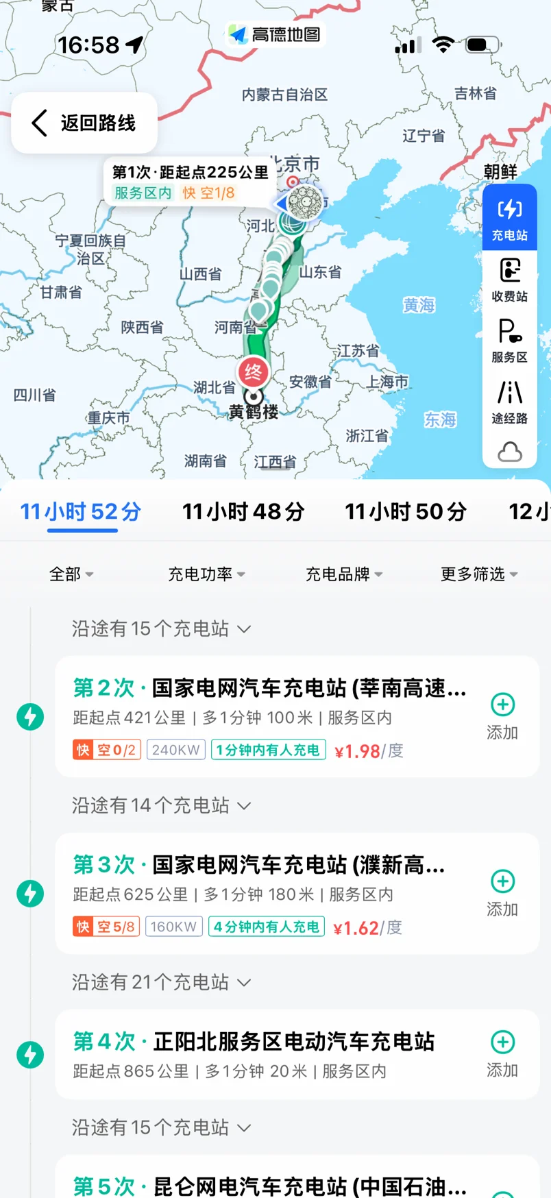 先说大家最关心的充电,真的超出预期。全程高速服务区充电桩很齐全,车机地图会自动规划沿途充电站,哪个服务区有桩还在服务区遇到了充电的鹏友!有几个空闲、绕路多远都清清楚楚,不用自己瞎找。我们基本就是开到服务区,停好车去上个厕所、买杯热饮,30分钟左右就能充到够用,速度比想象快太多。对比油车排队加油,我们充电耗时差不多,但成本只有油车的十分之一,一路省下来的钱,够多吃好几顿武汉美食,性价比拉满。