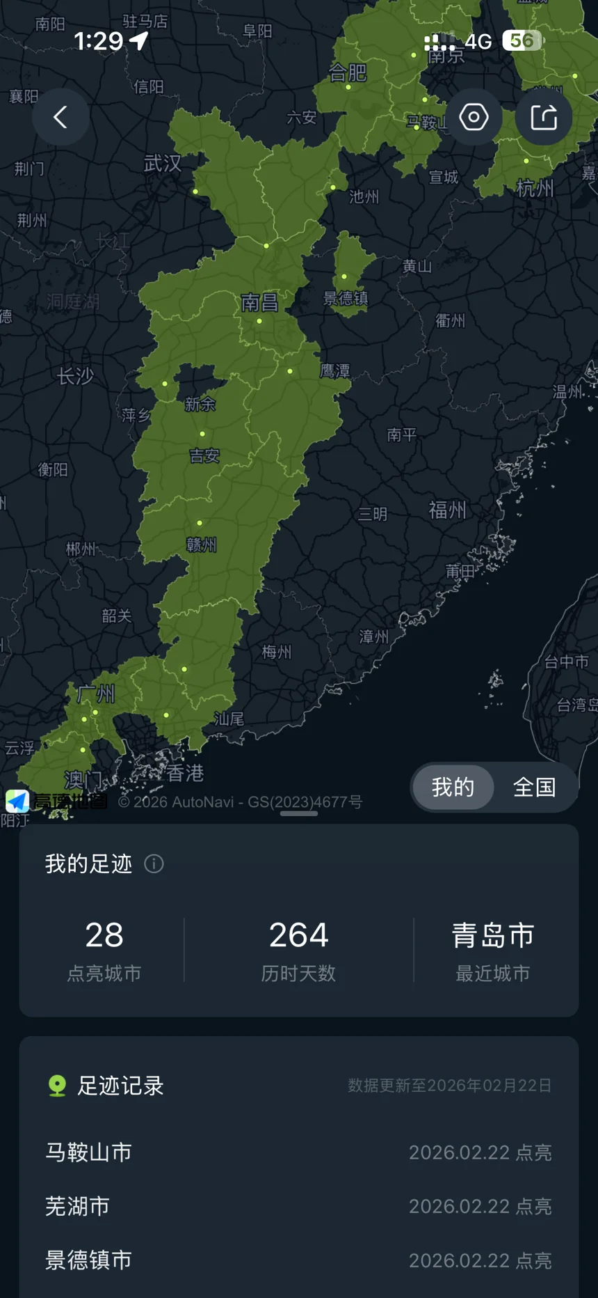 这趟旅程,我的足迹点亮了28座城市,从青岛出发,途经马鞍山、芜湖、景德镇,最终抵达广州。每一次点亮,都是智驾带我探索世界的印记。