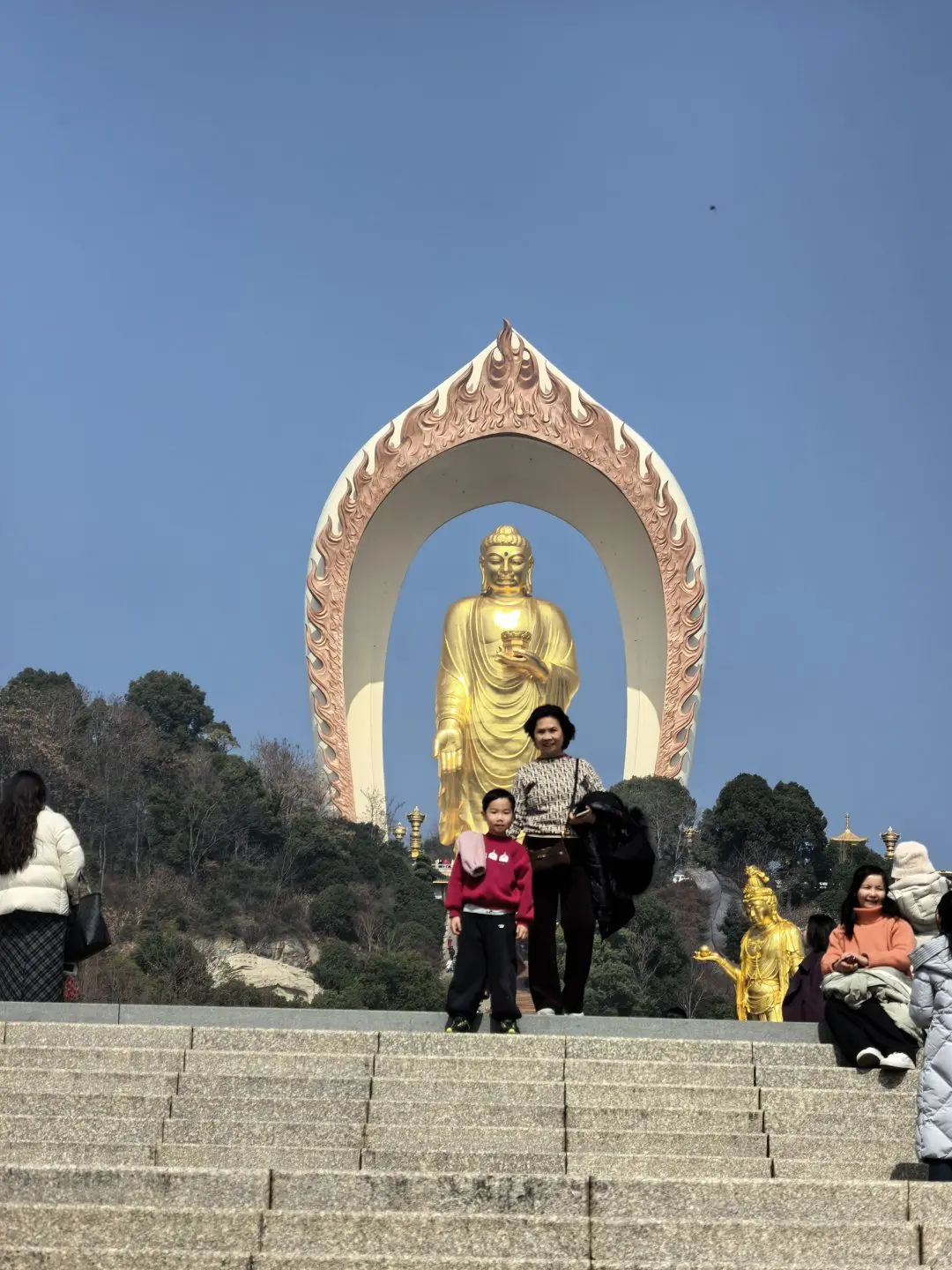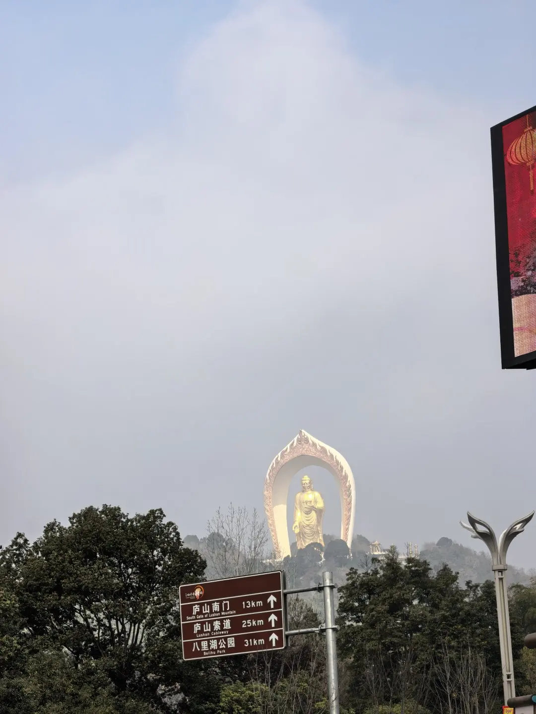 今天计划目的地终点是南昌,中午会途径鄱阳湖候鸟小镇,但途经九江东林大佛,大老远就看到高大的金佛,网上一查才知道这个佛还