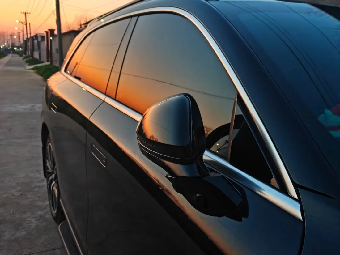 下班坐进车里的瞬间,被夕阳狠狠治愈到!🌆黑色车身像块光滑的巧克力,把橘粉色晚霞全揉了进去,连后视镜都在blingbling发光✨。摸着手感超棒的皮质方向盘,一天的疲惫突然就被这温柔的光融化啦~