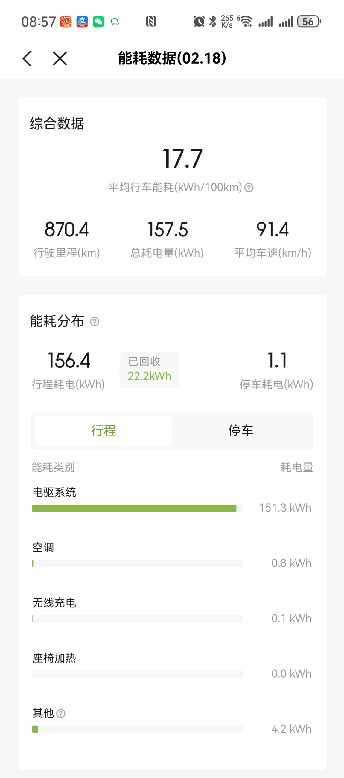 800V平台充电快是一方面,另一方面是能耗,可以看下边的图,18号跑了890公里,耗电158度,鸡柳满电是66度,就是充了两次电,平均满电能跑370km,而鸡柳的wltp是506km,也就是说能达到将近75%!!!这还是在高速上120迈的速度