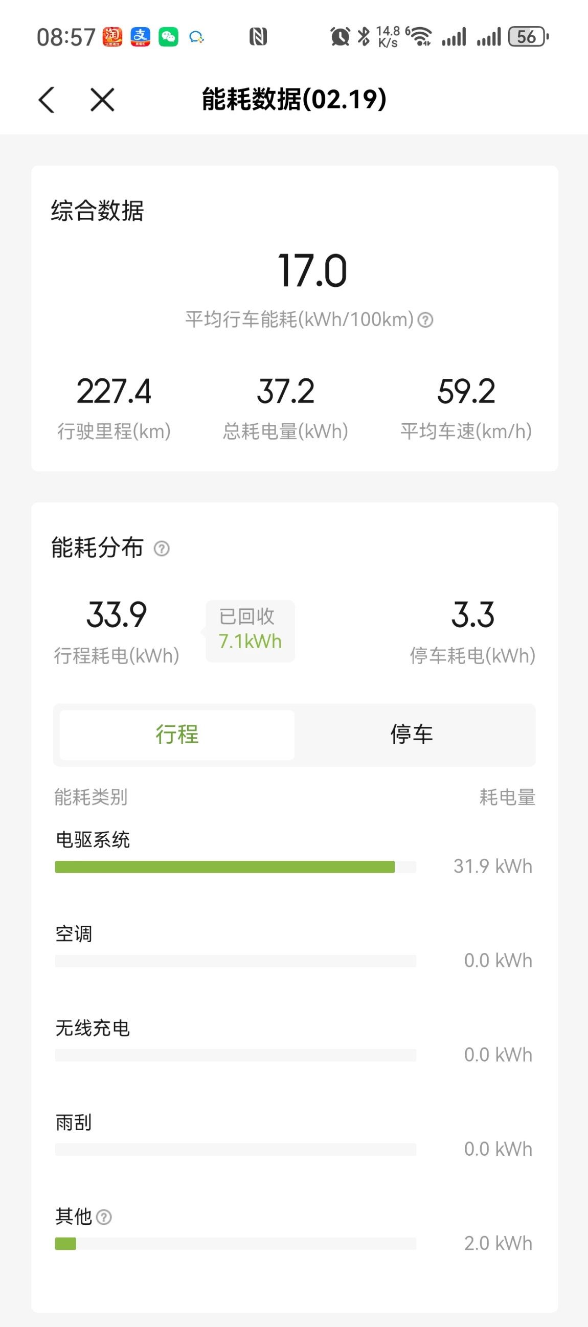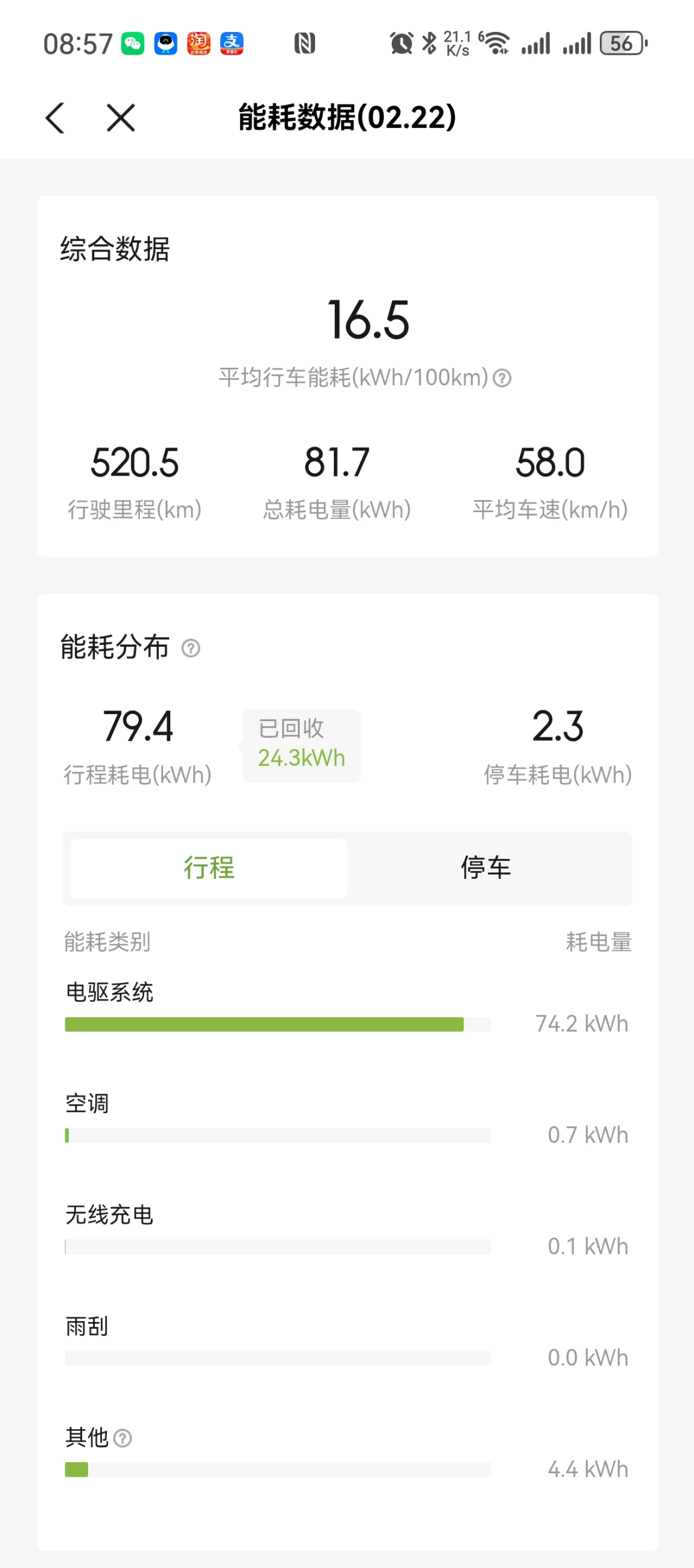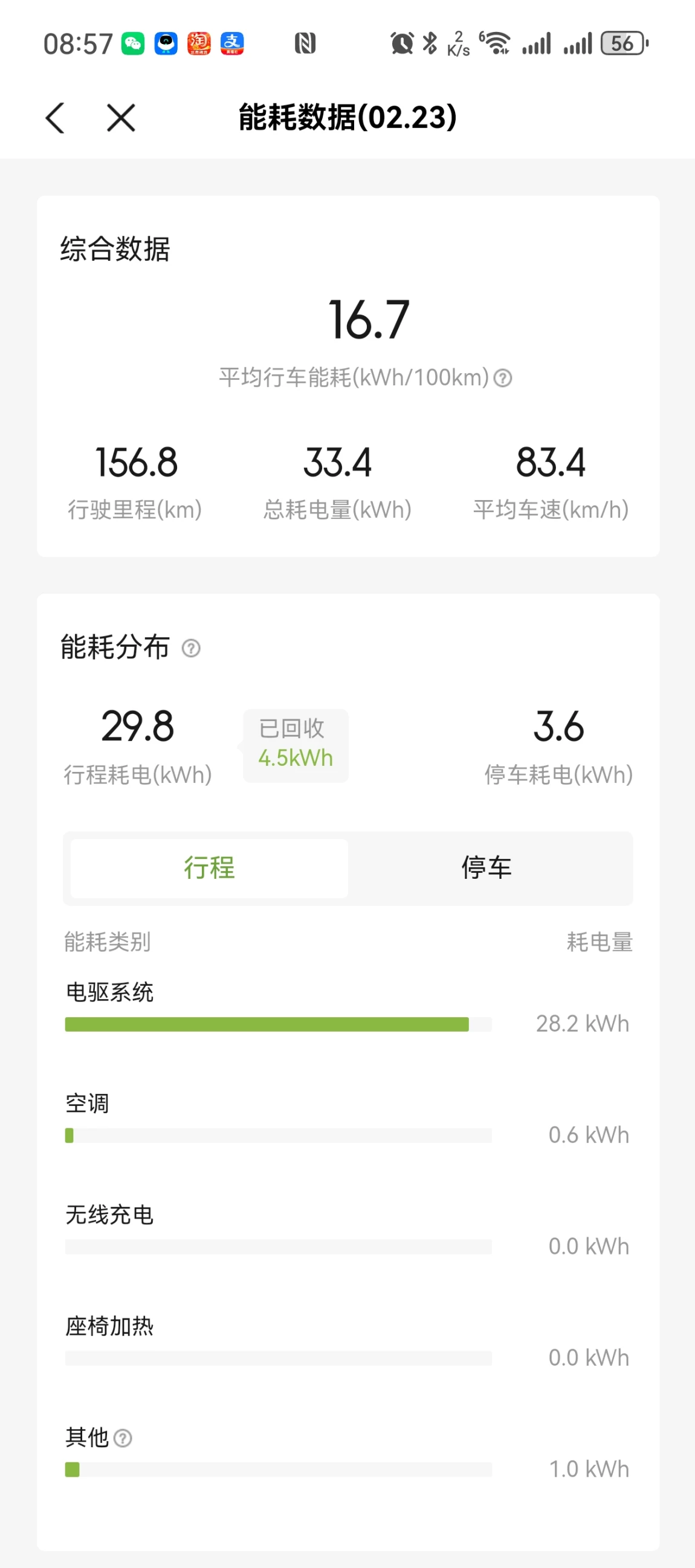 这天电耗16.5,由于很堵,反而是电车的领域,堵车时油车会一直耗油,但电车却很少耗电,换算一下,续航达成率到达了惊人的83%!!!