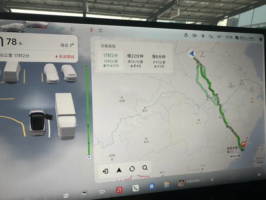 心里难免有些忐忑。1545公里,对于电动车来说,意味着至少需要进行3-4次补能。但看着屏幕上显示的“无法到达”预警,我并没有慌张。因为我深知,现在的移动补能网络已经足够发达,只要规划得当,续航焦虑早已成为过去式。