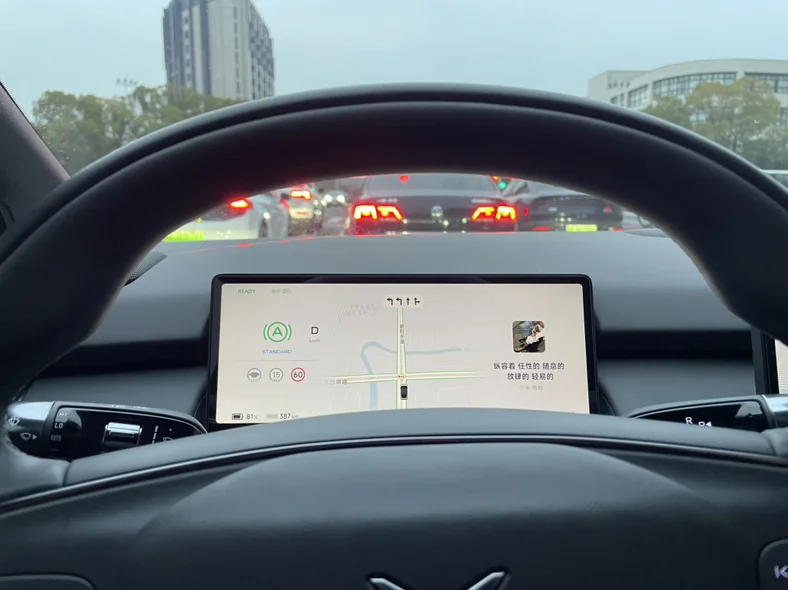 日常通勤以城市道路为主,早晚高峰偶尔会堵车,全程空调24℃自动模式,动能回收调到标准,驾驶模式也是日常最常用的舒适模式,没有刻意省电开法,就是正常家用代步的脚法。