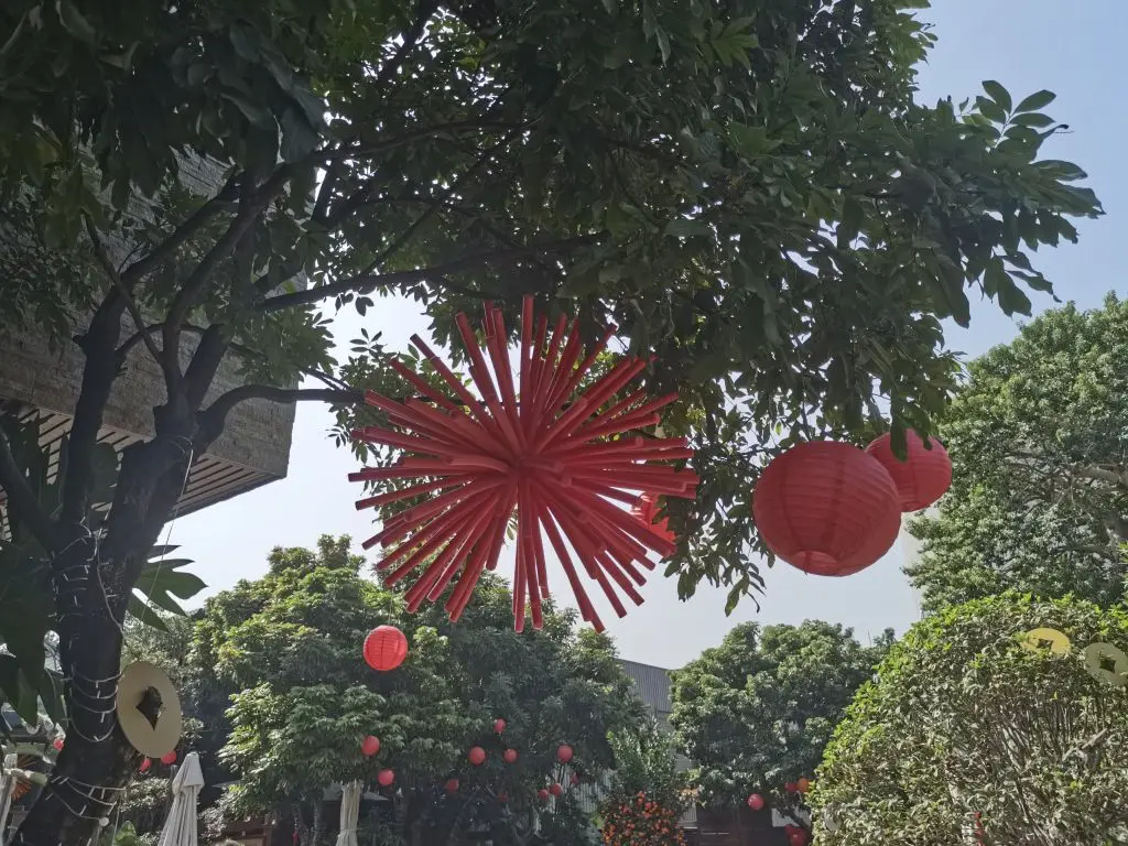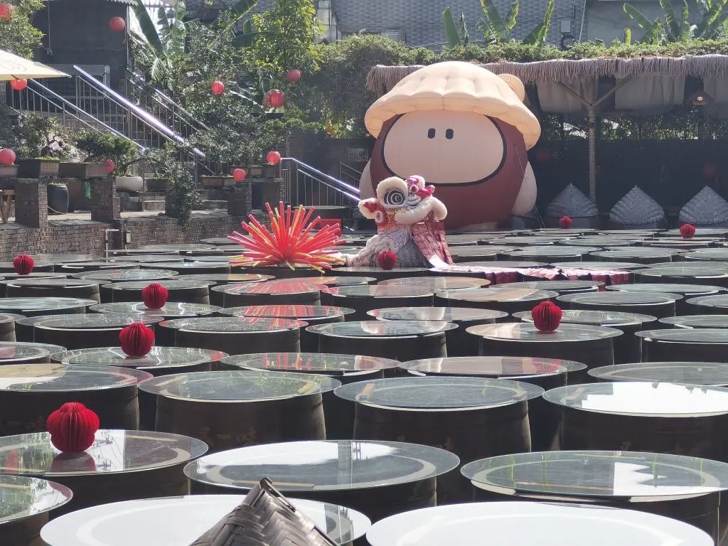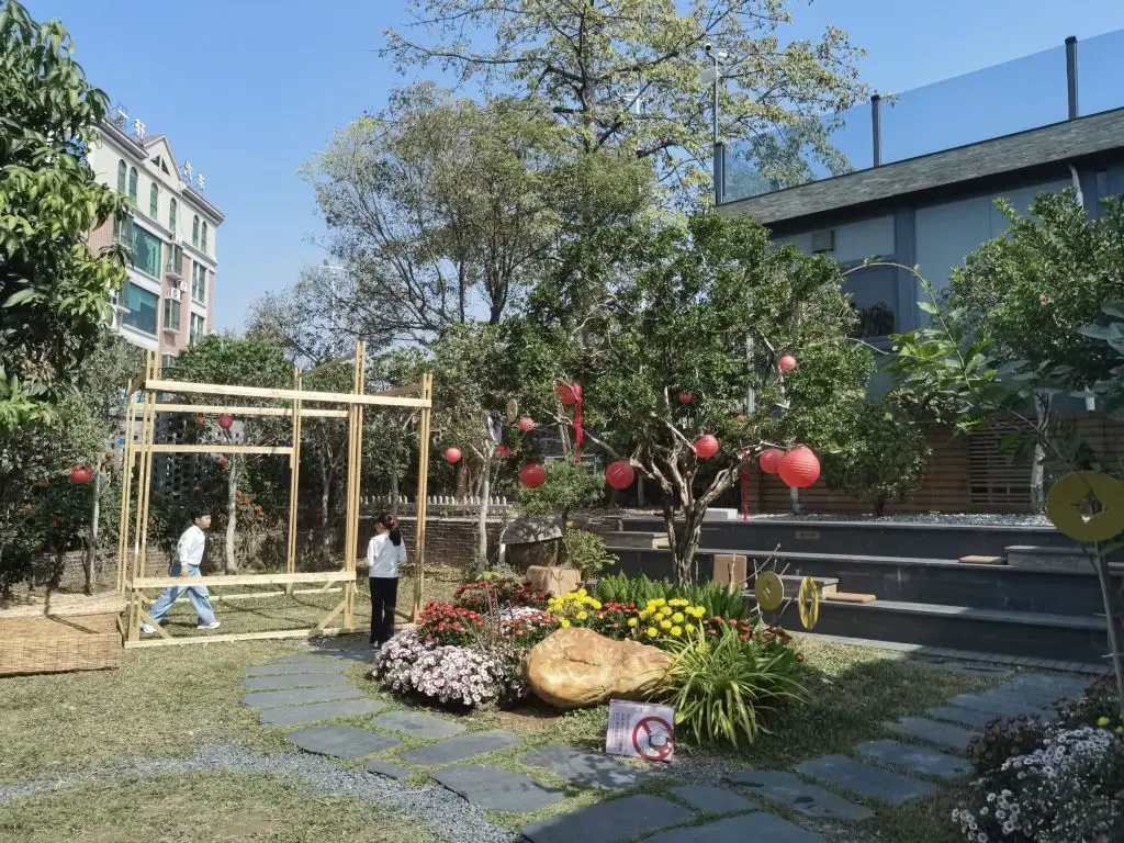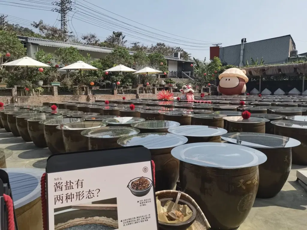 酱园的环境也打理得十分雅致。红砖矮墙、青石板路、错落有致的绿植,还有挂满枝头的红灯笼,处处透着岭南园林的韵味。孩子们在花丛中追逐嬉戏,大人们则在酱缸前驻足拍照,记录下这独特的场景。