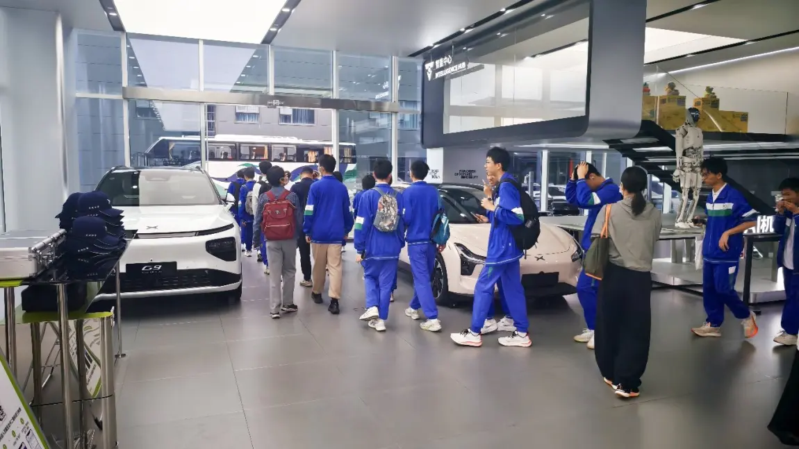 🏭我们一行先来到小鹏智慧工厂,这里碰巧出现曾经母校的校服。让更多青年学子来小鹏了解时代最前沿的科技,耳濡目染中种下成为鹏友或者同学的种子,如此高瞻远瞩很值得称赞。