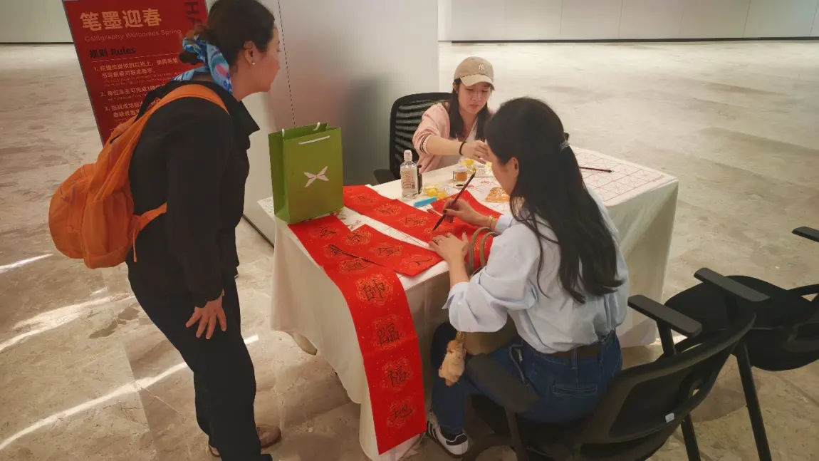 🧮午饭过后我们进行了节日活动来收集马的印鉴,二十年未写毛笔字的我,手抖写了副对联等晾干,想不到被小姐姐拿去临摹了😅