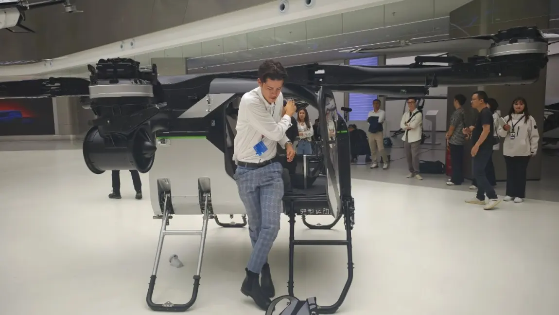 ☁下午参观了汇天展厅,让国外的鹏友们大饱眼福,连身高1米9的新西兰帅哥stefan也忍不住坐上狭窄的陆地航母飞行器座舱内体验了一把。