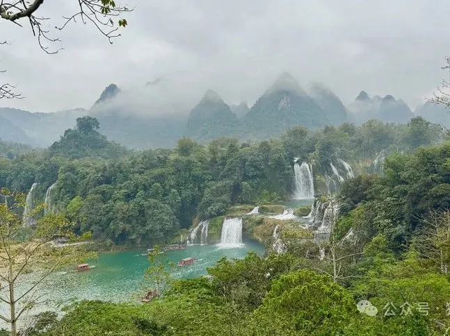 明仕田园景区的夜游,是坐船看两岸人造景观。第二日早,又是大雾。9点便驾车去德天, 省道上空寥无车,半封闭车道,在薄雾中开车竟然有了在仙境中穿越的感觉。过了硕龙镇,看到了蓝洞咖啡,计划中这儿是看了瀑布后要来这里慢慢喝咖啡的德天瀑布,进景点后 我们先走了整段路,中间爬上田园咖啡,从各个角度看瀑布,到了瀑布下,我们折返回到起点,在买竹筏票(48/人)又走了整个水路,我觉得二个体验都可以有。 在从大铜锣景点走回去的公路上还有3个观景点,一定要停下来看,全画幅水景, 当天的雾很大,更有仙山灵镜之感。