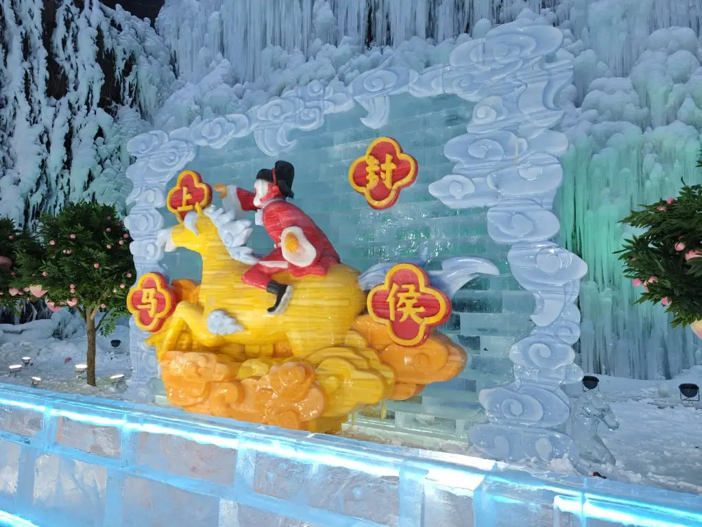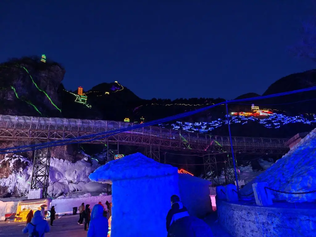 本届是第40届冰灯节,主题是“龙庆传奇·致敬经典”,整个峡谷都被《大闹天宫》的冰雕承包了 。13.6米高的冰制“南天门”真的震撼,蓝紫色光影流转的“灵霄殿”仿佛水晶宫阙 。孩子们在“龙宫借宝”区的冰椅上玩嗨了,追着冰雕孙悟空喊大圣。