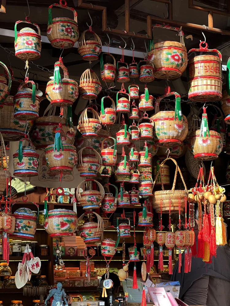 街头的生腌小摊藏着汕头的鲜,虾姑、花甲浸在秘制酱汁里,点缀着蒜米与香菜,鲜辣的香气勾着味蕾;宗祠前的游灯队伍缓缓走过,孩童提着莲花灯,老人捧着香火,灯火长龙蜿蜒在街巷,与漫天烟花、满城灯笼连成一片。