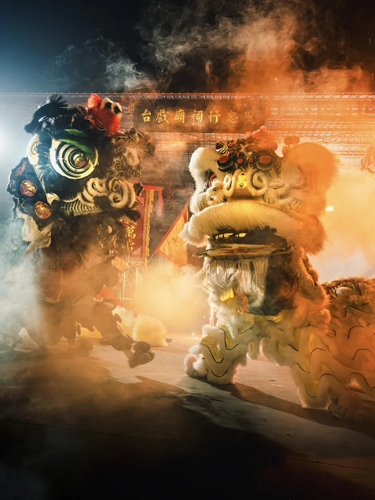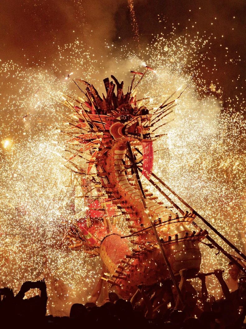 热闹声里,非遗的生命力在镜头中绽放。舞狮队身披彩毛,一黑一白在烟雾中腾跃,锣鼓声震彻街巷,狮头的眉眼间尽是灵动;更震撼的是烧火龙表演,火龙在漫天铁花中穿梭,金红的火花如暴雨般倾泻,舞龙人手执龙杆,在火雨中从容游走,这是勇气与传承的碰撞,也是汕头元宵最燃的篇章。