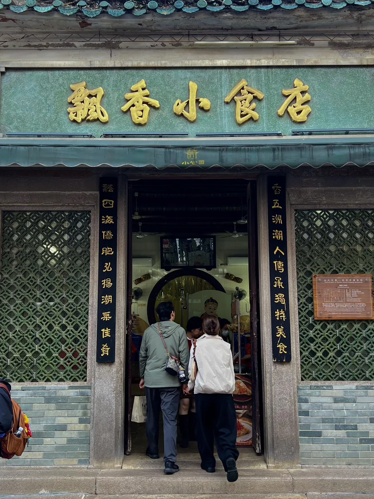 踏出门,红砖墙上“汕头”二字在阳光下格外醒目,斑驳的笔触刻着老城区的岁月痕迹。转角处,“飘香小食店”的绿底金字招牌熠熠生辉,“青青蔬菜商店”的旧牌匾爬满时光纹路,老铺门前人来人往,对联上的潮菜佳话、街巷里的市井气息,成了元宵最质朴的底色。这是汕头的慢,也是元宵的暖,每一扇店门后,都藏着潮汕人对生活的热忱。
