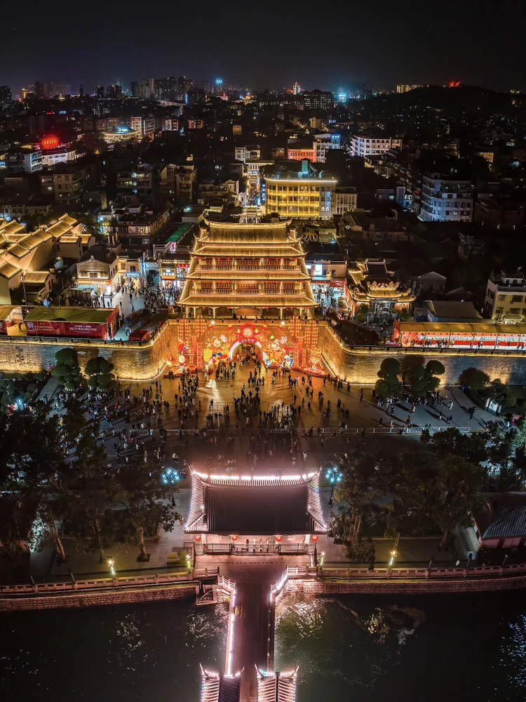 小公园历史文化街区,是汕头元宵最耀眼的舞台。千米灯街流光溢彩,中山纪念亭化作巨型走马灯,光影流转间诉说侨乡故事。各式灯组精巧绝伦,嵌瓷、潮绣、英歌舞、蜈蚣舞等非遗元素融入其中,传统与现代碰撞,文化与光影交融。灯光照亮南洋风格骑楼,红墙绿瓦在夜色中更显典雅,游人摩肩接踵,或驻足拍照,或猜谜嬉戏,人声鼎沸,暖意融融,重现“火树银花不夜天”的盛景。