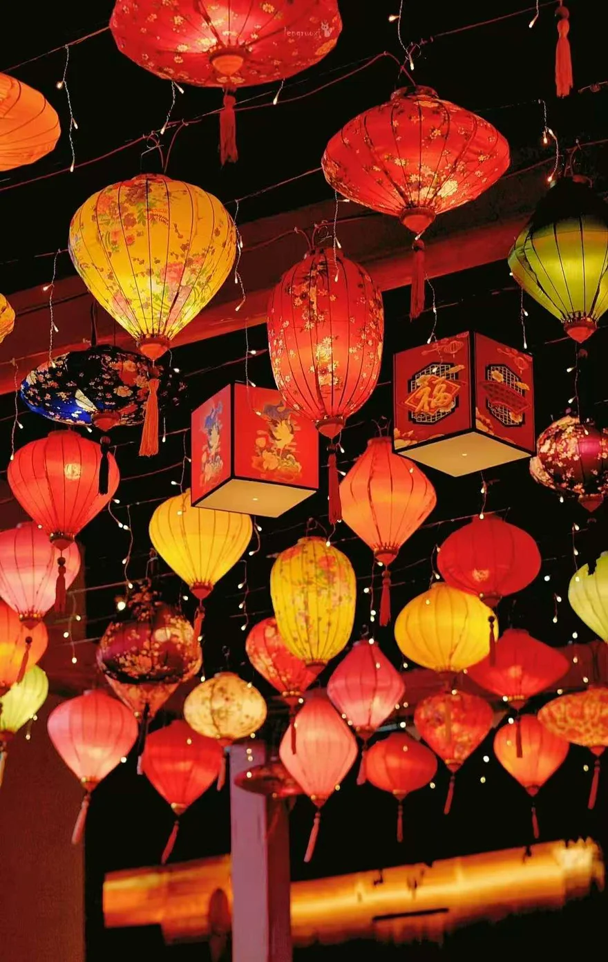 傍晚时分,天刚擦黑,街上的花灯就一盏盏亮了起来。红色的灯笼连成一片,暖黄的光漫在晚风里,整条街都变得温柔起来。路边摆着各式各样的花灯,兔子灯、荷花灯、走马灯,小朋友提着灯跑过,笑声飘得很远,年味好像还没散去,又多了几分元宵独有的热闹。