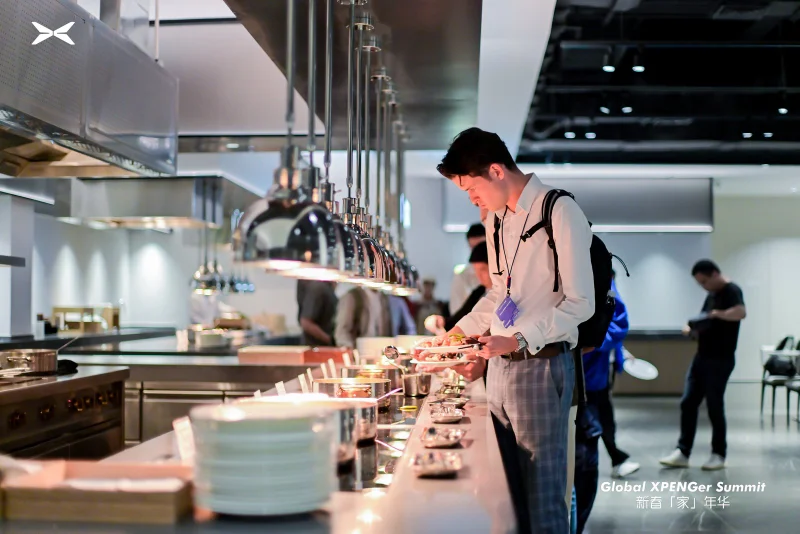 2️⃣中午回到小鹏总部,主办方早就准备好了精致又丰盛的自助餐,国内鹏友和海外鹏友坐在一起边吃边聊,有人分享国外的用车环境,有人交流日常驾驶小技巧,语言不同却一点不影响交流,氛围轻松又温暖。