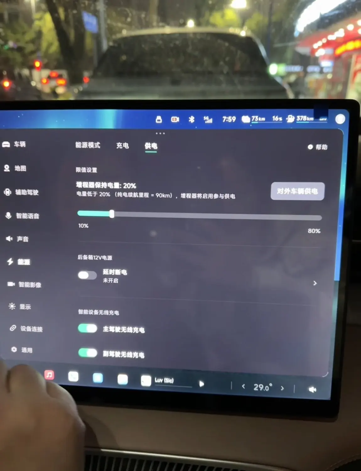 插上枪,车内就可以启动对外车辆供电。