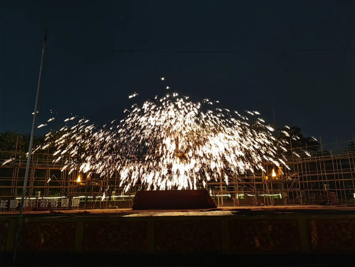 早就想带孩子们见识真正的民间焰火。当1600℃的铁水击向夜空,化作万千金色流星,小的那个在我怀里惊呼:“爸爸快看!好多星星掉下来啦!”大的那个站在旁边,看得眼睛都直了。