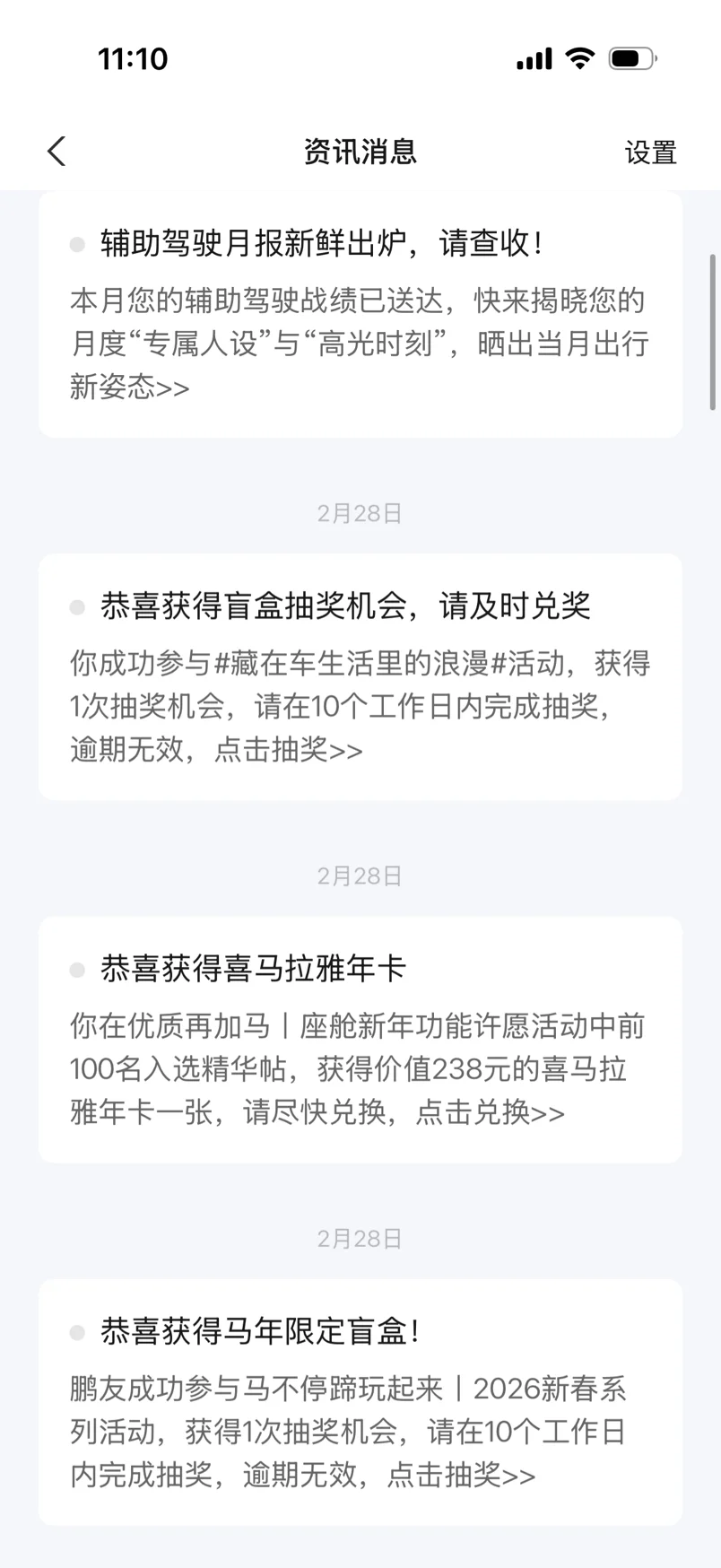 而且参加活动超省心,小鹏APP会主动提醒咱们参与抽奖,根本不用担心错过福利,过年期间的充电券、充电卡这些实实在在的优惠也安排得明明白白,让咱们新年出行都能省省心、省省钱🔋
