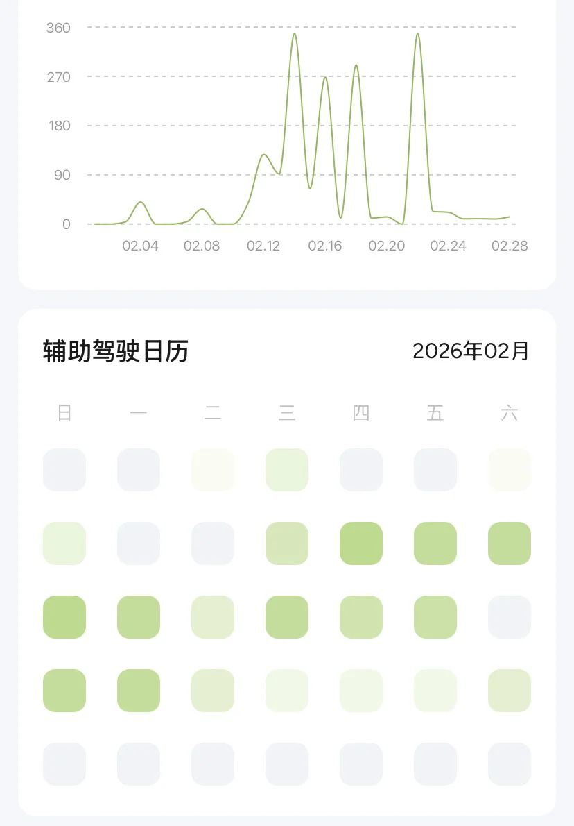 第一👉总结总结过年🧨期间我的开着小鹏P7+只能辅助驾驶数据📊整个二月份共计行驶了2600Km左右,每天通勤时间40Km😏其中NGP了1775.81KM👏占总里程66.45%,其中辅助驾驶天数92.86%,可想而知我几乎每天都在使用NGP😘不得不赞赞新升级的版本真的很丝滑,城区🌆高速省道无所不能,判断力更加准确,执行力强😎让我越来越爱上了智能辅助驾驶😋带着家人🧑🤝🧑过年🧨去拜年行驶了1360Km左右,所有人都在感叹❗️他的智能辅助驾驶系统强大😘归途时在家人风趣幽默的说这回有了小P在也不用唠叨你高速慢点开等话了😜同时我也是过年🧨期间哈尔滨市智能驾驶第一名🏅2月全市排名第十三😍😍