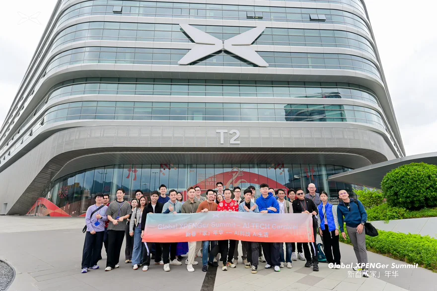 参观结束后乘车返回科技园,全体车主在园区标志性打卡点合影留念。大家举着小鹏手幅,笑容灿烂,用镜头定格这场专属鹏友的团圆时刻。阳光正好,氛围温馨,这就是“一家人”的模样。