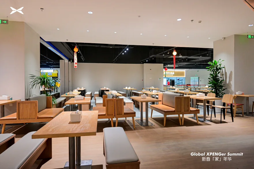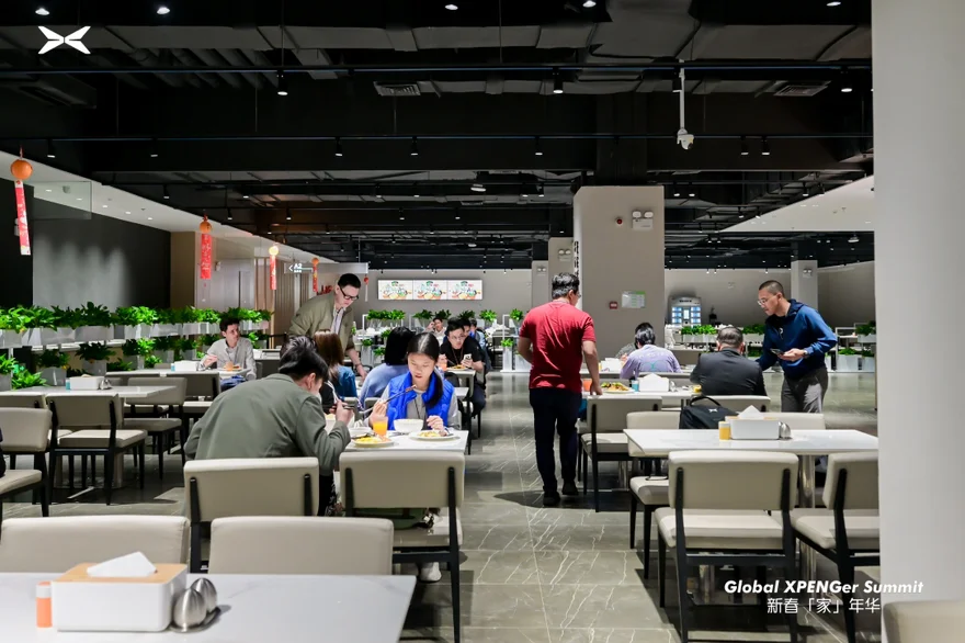 中午享用丰盛自助午餐,菜品丰富、口味可口,补充能量后继续下午的精彩行程。饭后自由漫步科技园,现代化建筑、舒适休息区、充满设计感的品牌文化墙,处处体现小鹏的用心与格调。