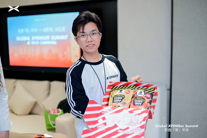 清晨9点,我准时抵达广州小鹏科技园T2西二出入口,现场早已布置得年味十足,红色主题装饰搭配小鹏logo,喜庆又高级。工作人员热情引导签到、发放手环与活动手册,来自各地的鹏友们有序集合,彼此笑着打招呼,陌生感瞬间消散。