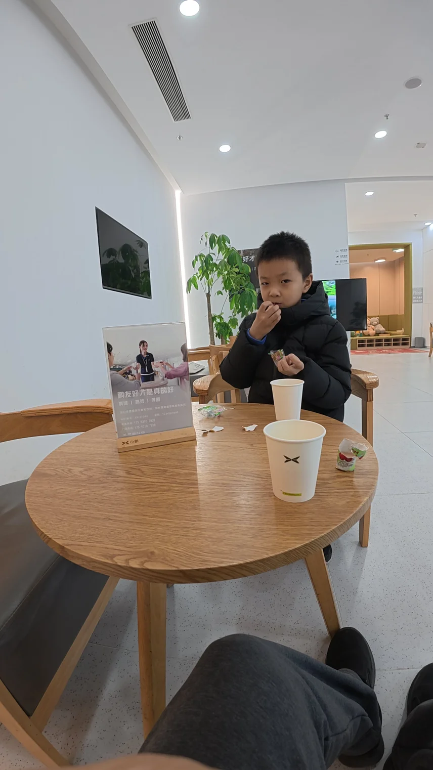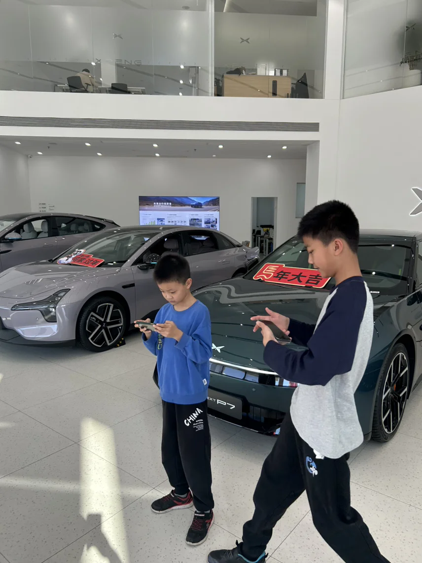年关了,工作人员还都在岗,春节不打烊的服务在此时具象化了👍🏻媳妇带娃还在店里吹着空调,喝着凉饮,听销售讲小鹏p7+和G6 M03等车型配置😃