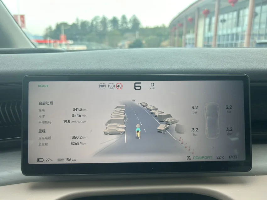 从北向南,气温一路攀升,胎压也跟着“躁动”起来。在北方时冬天我把胎压定在标准胎压2.7-2.8,进入潮汕,四轮胎压很快就到了3.1-3.2,我有点担心,从南澳岛玩完直奔汕头,顺路拐进小鹏4S店👇🏻