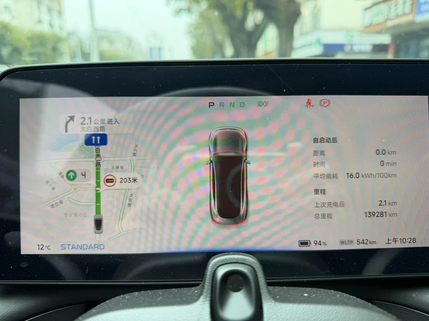 早上10点28分出发,出发前我的P7续航WLTP剩余542公里。驾驶模式设置成标准模式,能量回收设置成低。贺州室外温度是12度,这样的天气对电车来说比较友好,不用开暖气和冷气,打开外循环开自然风即可。