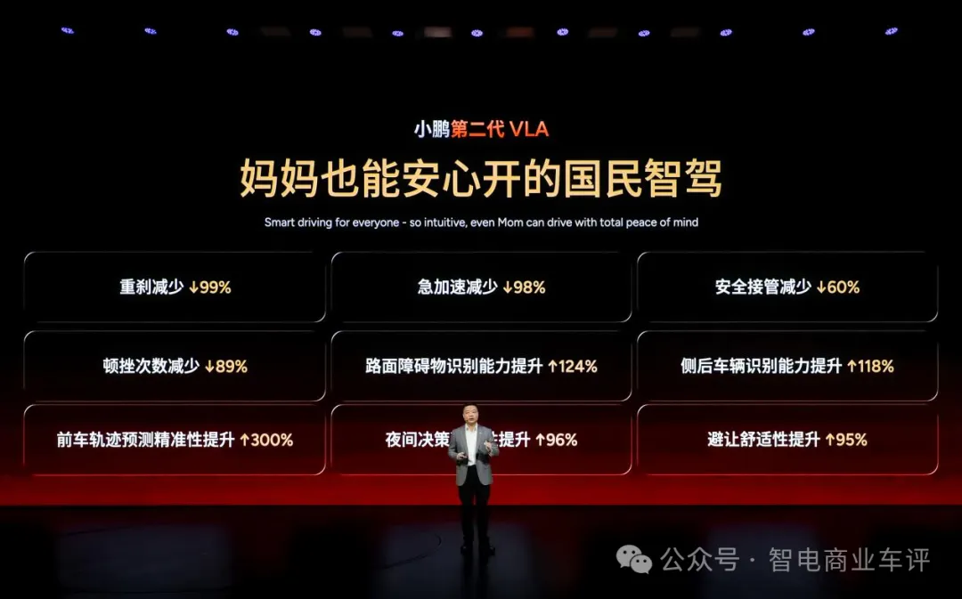 首先说说小鹏第二代VLA,这更是一场关于“智驾普及”的重新定义,从极客玩家的尝鲜,到全家人都能安心使用,就像何小鹏所说,“好的智驾应该像坐电梯一样,按下启动键,就能够从家里到达公司。”