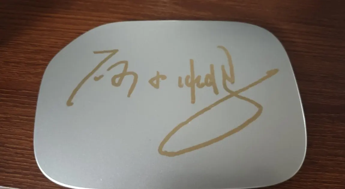 那时候他有个想法,想邀请大师兄签名在充电盖上作为纪念,可能由于现场比较热闹,大师兄行程也比较匆忙,最后他没有圆梦这个想法,有些许失落,我们想着能不能帮他复刻这个愿望。