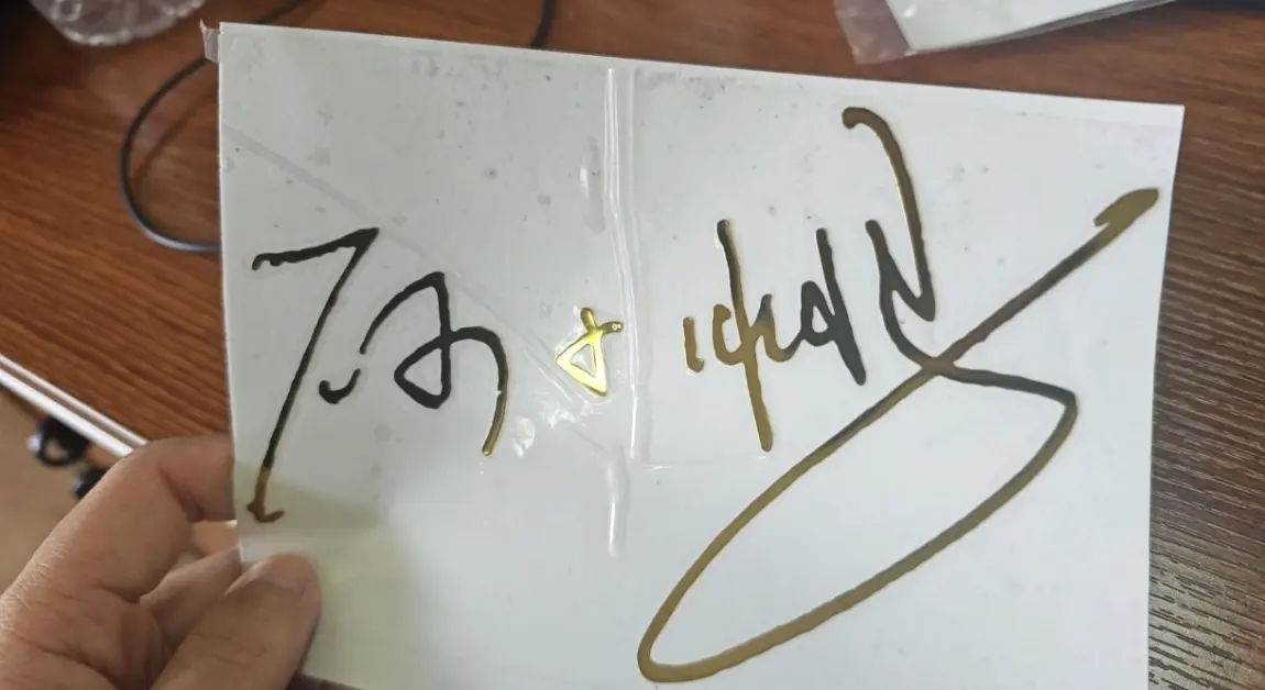 说干就干,先确定打印方式。从普通uv打印和喷绘纸打印到最后选定的水晶标uv打印,水晶标打印可以最大限度的复刻出手写体的立体感,图案保存时间也长一些。