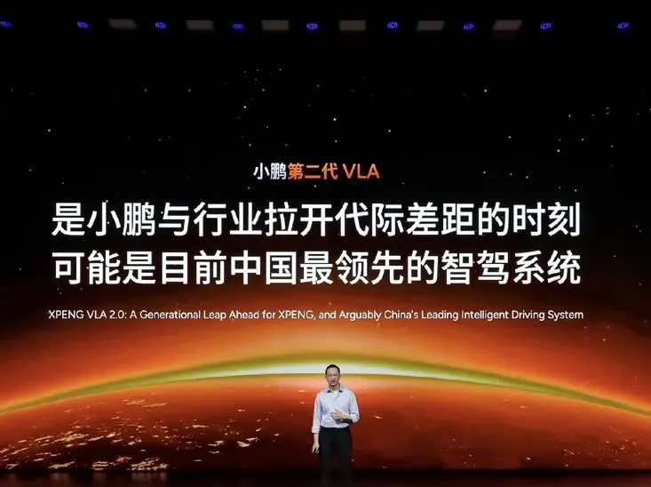 何小鹏在 2026 年 3 月 2 日发布会明确:VLA2.0 比行业第一梯队(含华为 ADS、理想 AD Max、蔚来 NWM、特斯拉 FSD)综合领先接近 5 倍,基于内部测评,覆盖接管、丝滑、可达范围、效率、安全五大维度。