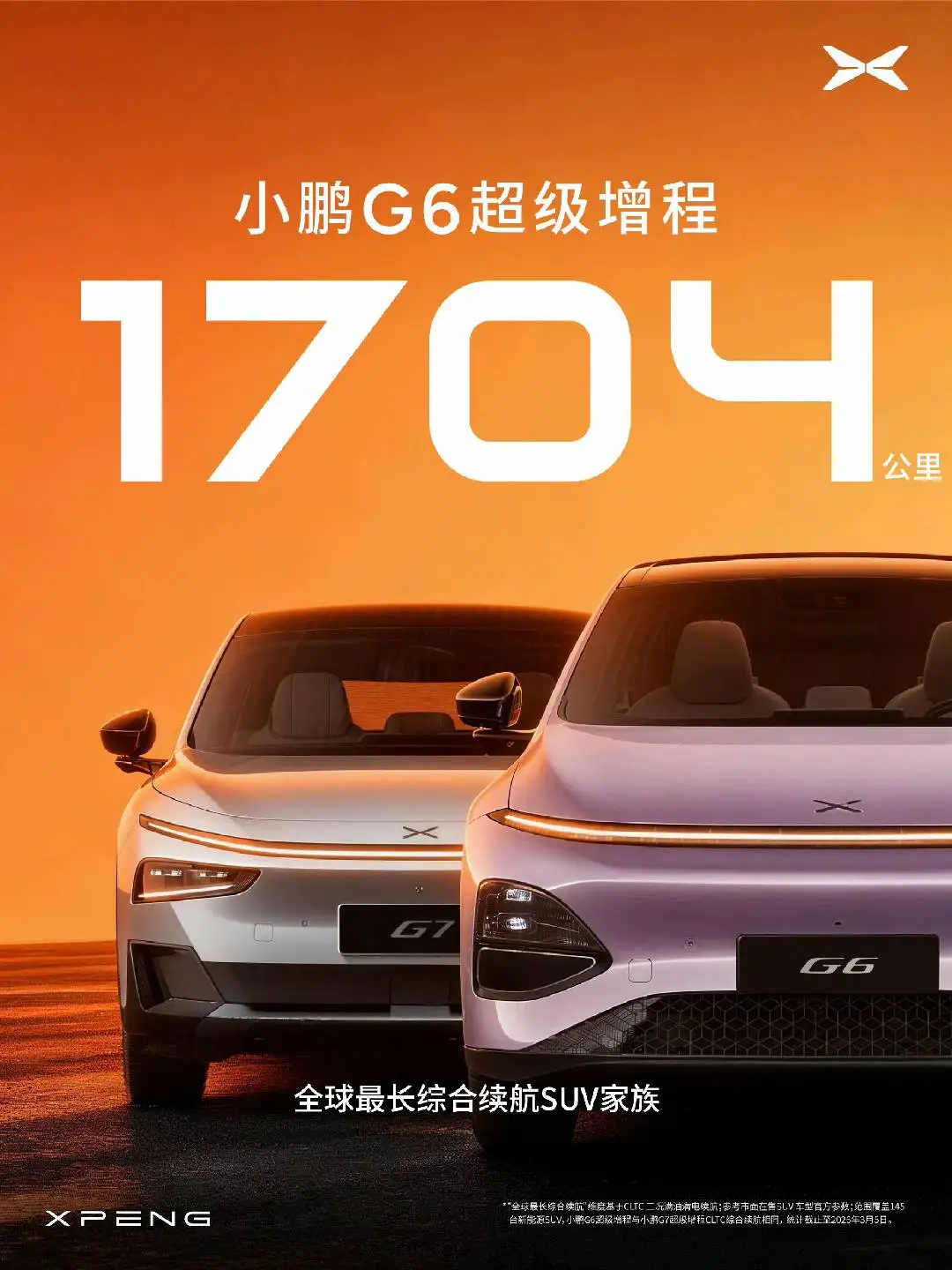 小鹏G6超级增程,今日正式加入全球最长续航综合SUV家族