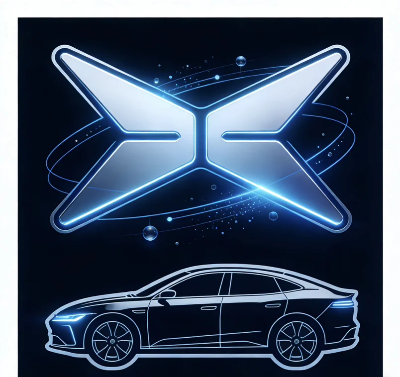 • 上方的小鹏「X」标识采用金属银底+冰蓝霓虹描边,模拟星际飞行器的能量核心质感,边缘的光流效果如同智能系统的数据流在流动。