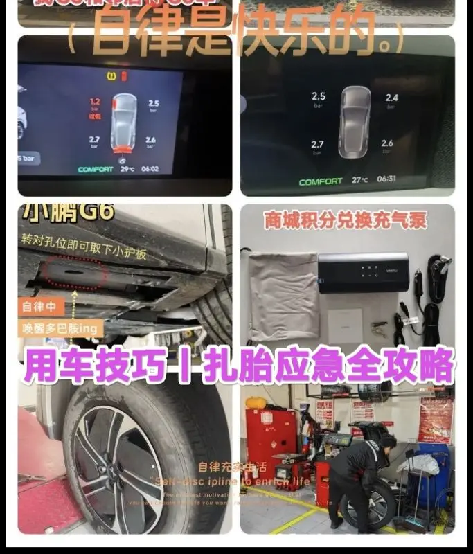以上就是本人小鹏G6扎胎应急全攻略,以后鹏友们遇到轮胎被扎就不用慌啦!可以借鉴我这次分享,希望鹏友们都能安全出行永远不会被扎胎。感谢小鹏G6陪伴我上下班,让我们继续开启未来美好旅程。@社区活动小姐姐