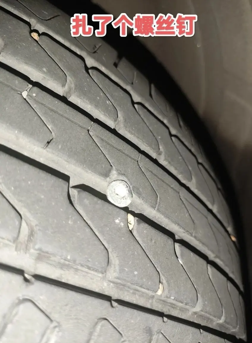 我顿时无语心里“咯噔”一下,原本轻松的节奏瞬间被打乱。低头看了眼屏幕上跳动的数字,下车后肉眼竟看不出明显瘪陷。犹豫了两秒我还是蹲下挤压轮胎确实太软,打开手机手电筒开始绕着轮胎仔细查看,果然看到一颗大大的螺丝钉。