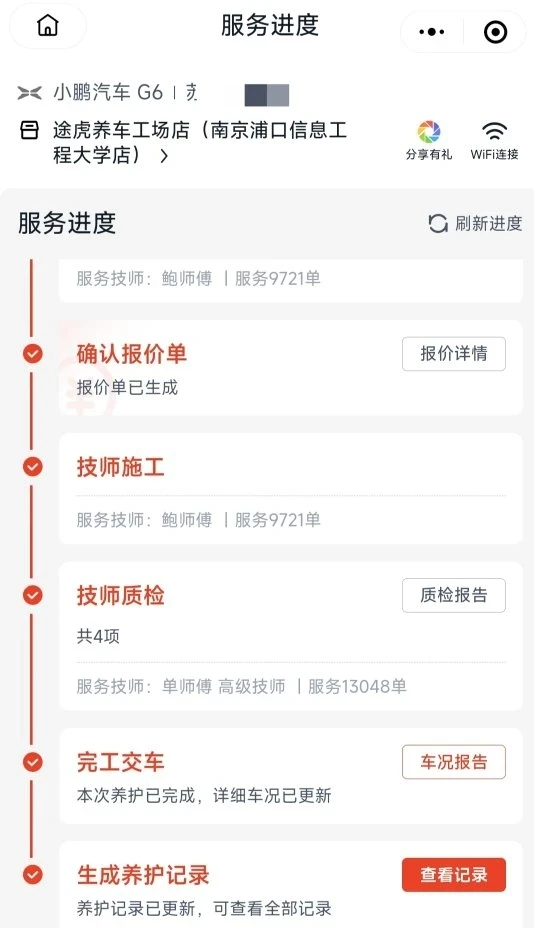 补胎服务上途虎也做了些简单保养记录数据: