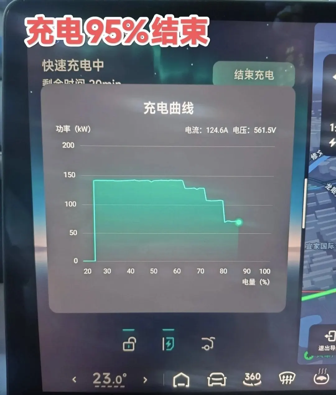 小鹏S4超充桩不到40Min充电至95%,同时车辆胎压也观察没有变动。