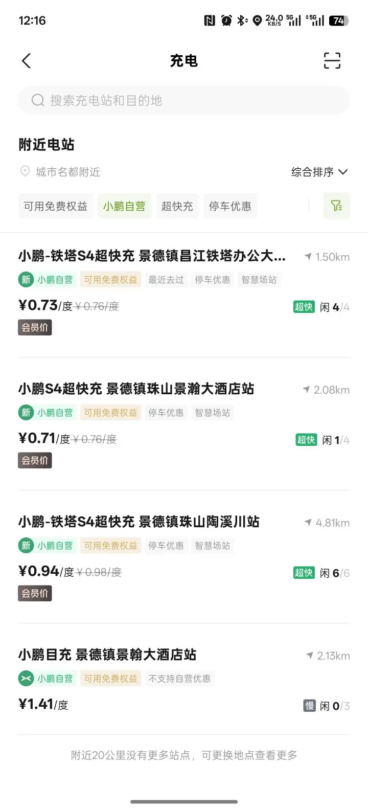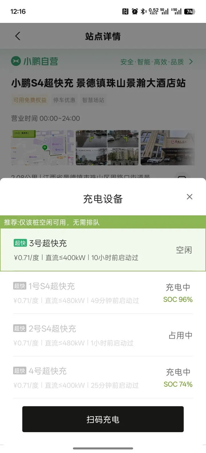 这次在景瀚大酒店小鹏超充站的体验整体不错,老站焕新后,设备更新,充电价格也大幅下降,还有免费停车福利,对于本地车主来说很实用。虽然这次因为新站和电池未预热的原因,充电功率没有拉满,但不影响日常补能使用。来景德镇玩的鹏友如果有补能需求,这个站点值得推荐,位置便利、价格实惠、不用排队。