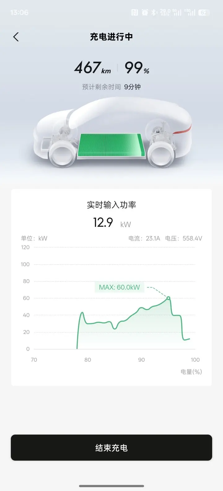 👉🏻这次充电功率没有达到预期,分析了一下原因,可能是新站刚焕新,电流还不太稳定;另外今天温度较低,我从单位开到充电站只有几分钟,电池没有充分预热,所以功率没能拉满。不过我这次充电的主要目的是给电池做满电矫正,刚好趁充电去旁边商场吃了顿饭,也不介意充电速度快慢,不用匆忙回来拔枪。等后续温度正常了,我再单独来测试一下这个站点的实际充电速度。从78%充到100%,一共用了41分钟,充了18.24度电,补能106km,满足日常出行补能需求没问题。