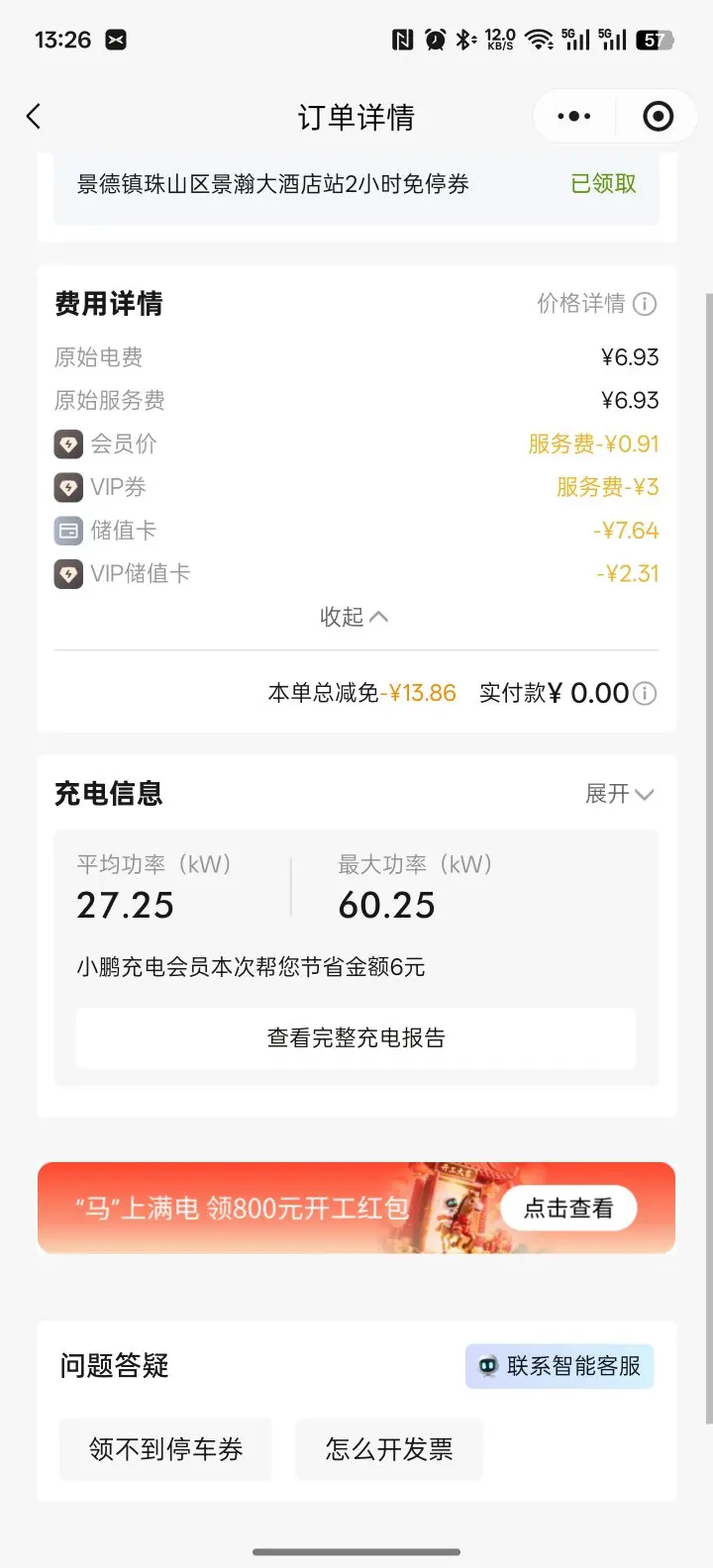 因为要给我的G6满电矫正,顺便给周末的出行增加安全感,今天中午趁着午休时间去景德镇珠山景瀚大酒店的小鹏自营超充站充了一次电。当然,更重要的是体验车主福利,免停+VIP+积分=零元购!