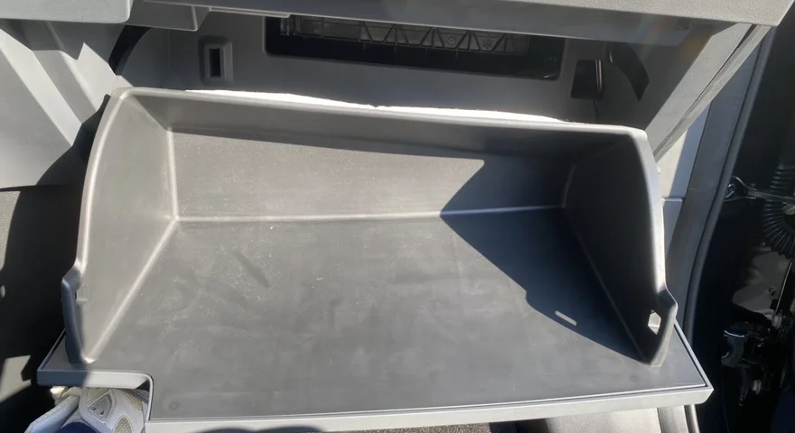 2. 找准位置:滤芯在副驾驶脚底,头伸进去,往上看能看到盖板。