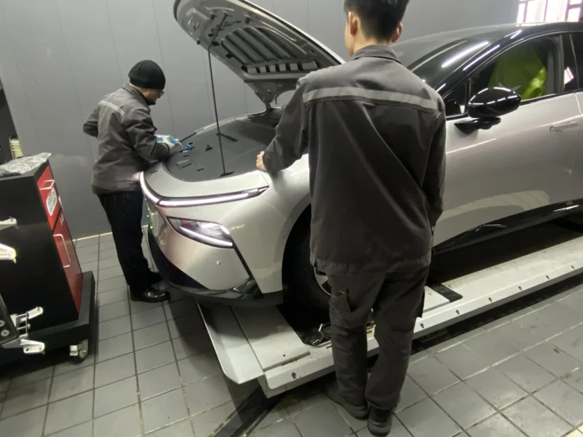 第三👉到了车间专业的师傅认真的做了底盘、胎压、防冻液等真是细心检查🧐,最后还帮我加满了玻璃水,春天的胎压也做了调整,主动一项一项跟我核查之前的问题🙋♀️真的好感动😹,小鹏的每个环节服务都如此用心