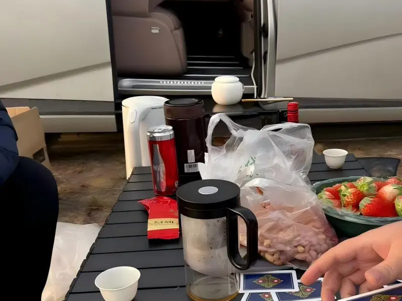 春日户外露营忘带放电枪,直接用x9车内的220v接口超级方便,打开侧滑门直接供电。