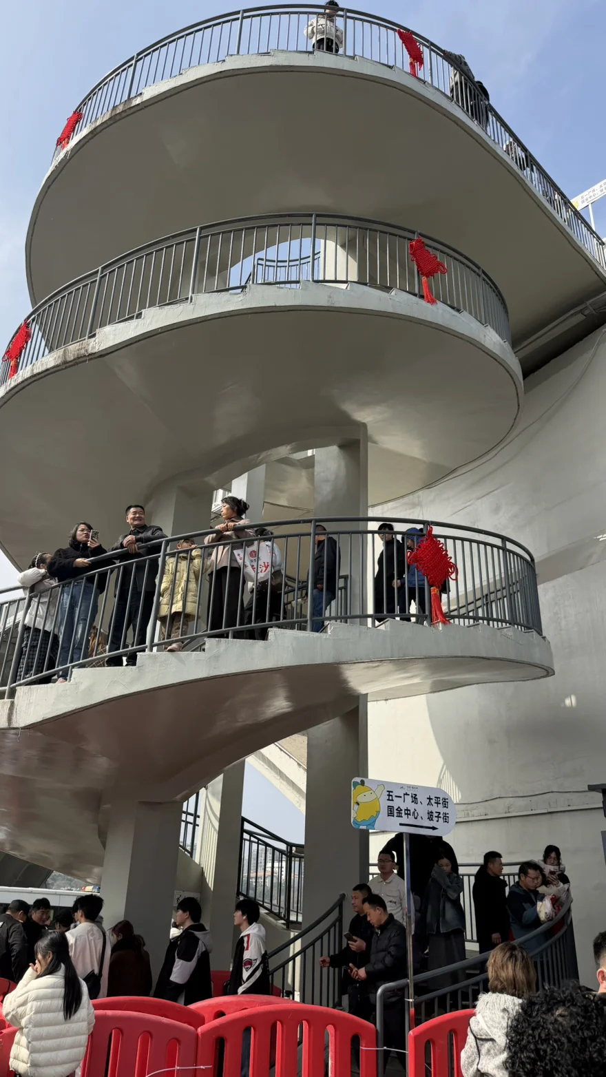 从打卡点出来后,从景区走这条楼梯到桥面,然后步行2公里左右到国际步行街。
