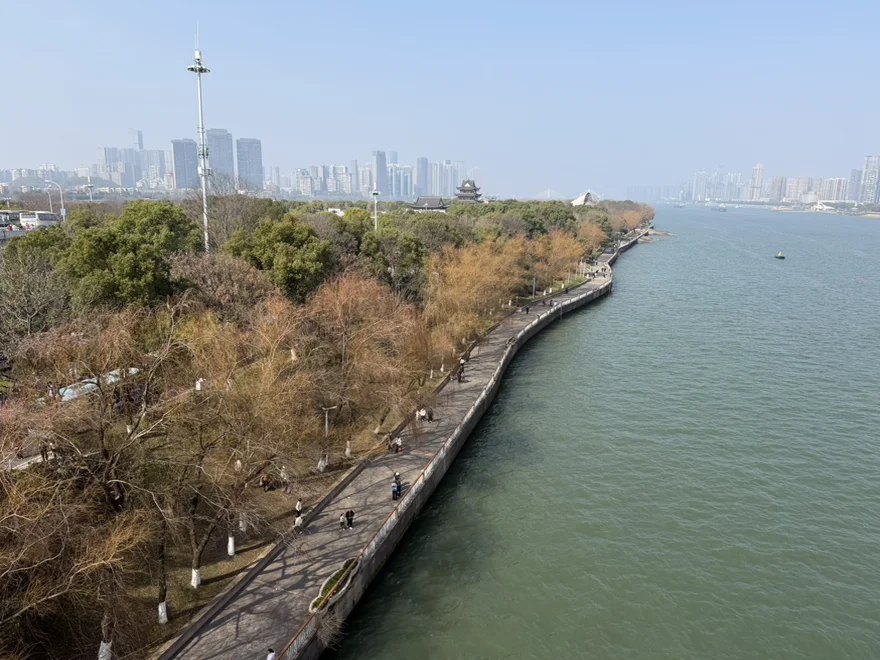 站在桥上看橘子洲头,景色很美。湘江是长沙的重要河流,穿城而过,滋养着这座城市。江面开阔,橘子洲静静卧在江中,构成长沙标志性的画面。吹着江风,看着眼前的景色,让人觉得安心又舒服。